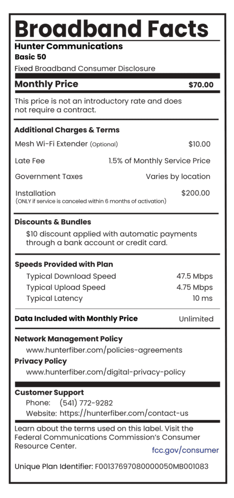 Broadband Facts – Cable 50M